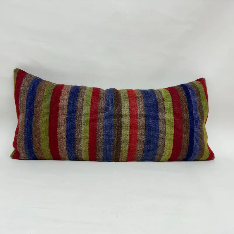 Red Linen Throw Pillow with Bronze Patchwork, Embroidered Vintage Pillow
