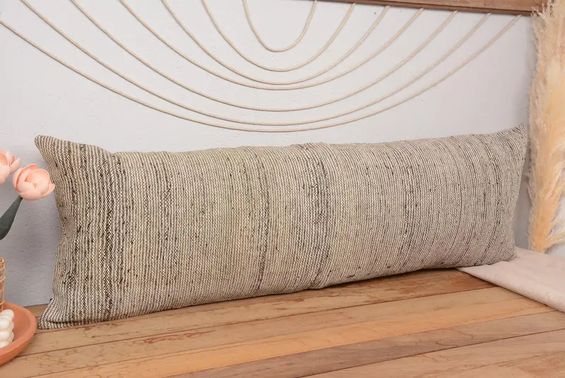 Beige & Brown Striped Pillow, Embroidered Vintage Throw Pillow