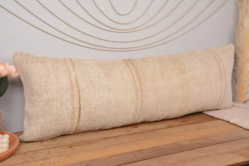 Embroidered Beige & Green Striped Pillow, Versatile 16x48 Throw Pillow