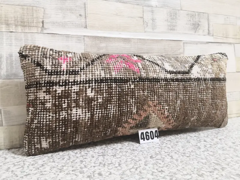 Handmade Embroidered Wool Throw Pillow, Geometric Patterned Vintage Cushion