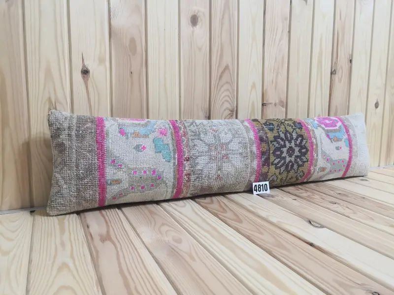 Handmade Embroidered Wool Throw Pillow, Rectangular Patchwork Accent Pillow
