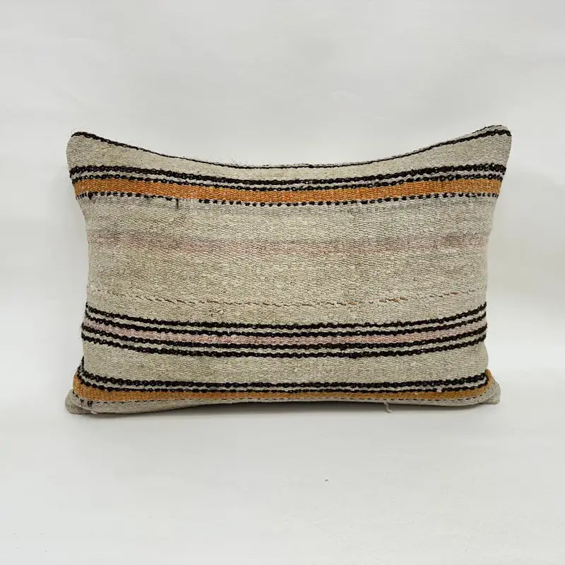 Beige & Brown Striped Throw Pillow, 16x24 Embroidered Cushion