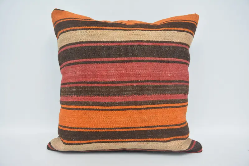Red & Orange Striped Throw Pillow, Embroidered Vintage Cushion
