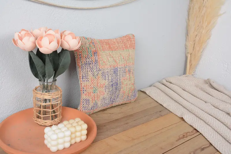 Orange & Purple Embroidered Throw Pillow, 12x12 Handmade Geometric Pillow