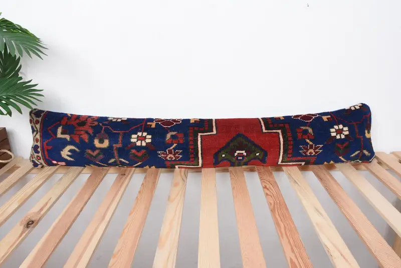 Blue & Red Floral Embroidered Throw Pillow, Vintage Rectangular Pillow