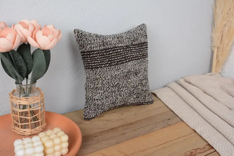 Rustic Striped Brown & White Pillow, Handmade Embroidered Throw Pillow