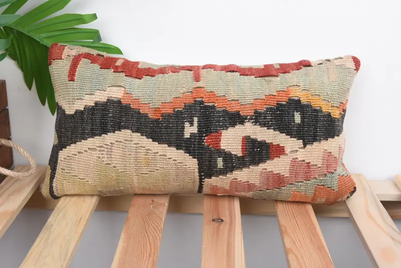 Brown & Beige Kilim Throw Pillow, 8x16 Embroidered Pillow