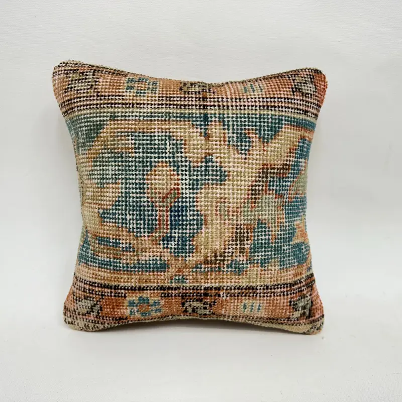 Blue & Beige Southwestern Throw Pillow, Vintage Embroidered Cushion