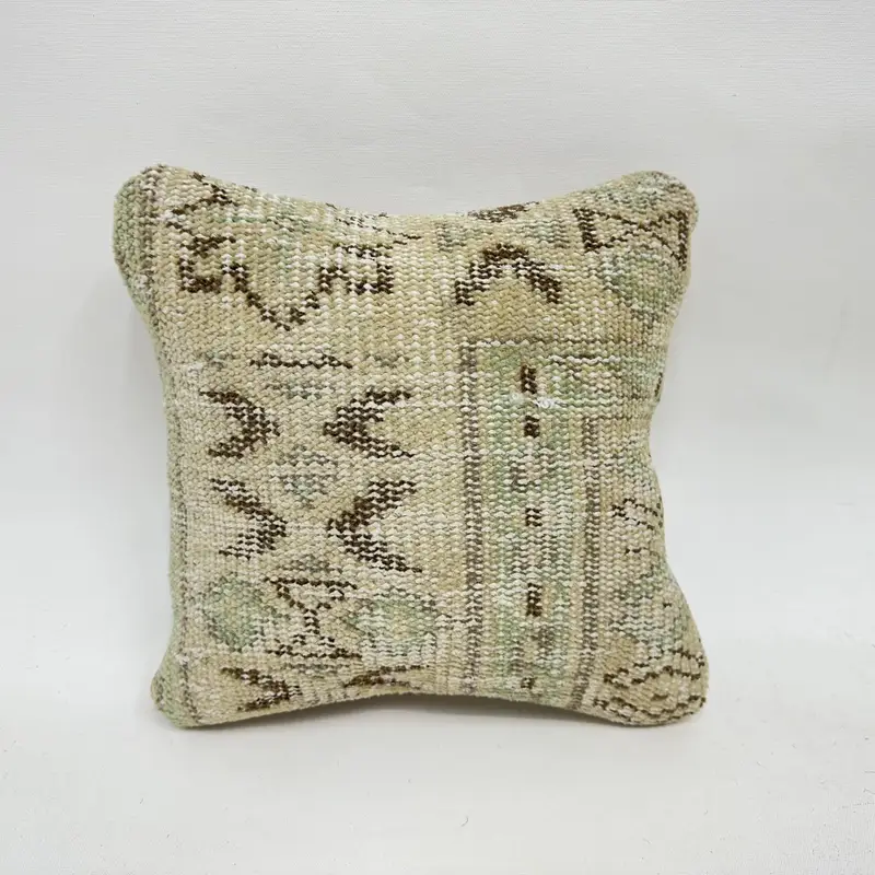 Beige & Brown Embroidered Throw Pillow, Vintage Floral Pillow