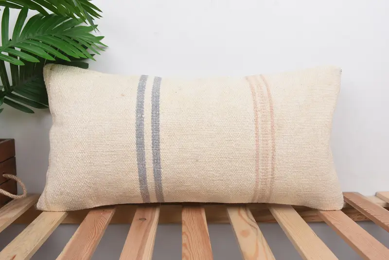 Beige & Bronze Striped Pillow, 24x12 Embroidered Throw Pillow