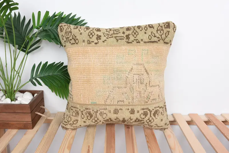 Embroidered Southwestern Throw Pillow, Vintage Beige & Orange Cushion