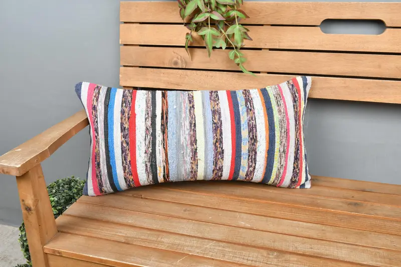 Embroidered Rectangle Pillow, Striped Pattern Throw Pillow