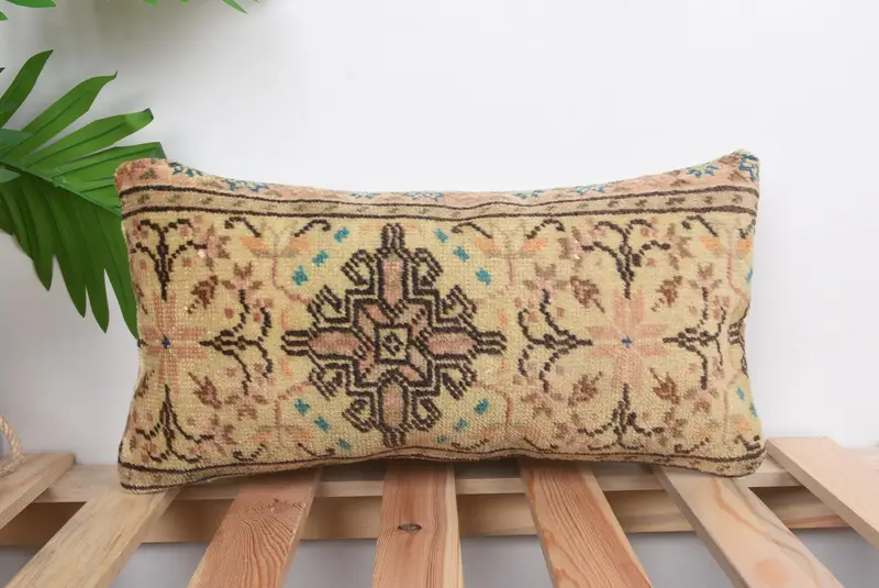 Handmade Southwestern Embroidered Throw Pillow, Beige & Brown Linen Pillow