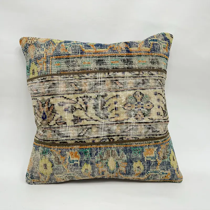Blue & Beige Patchwork Throw Pillow, 24x24 Embroidered Cushion