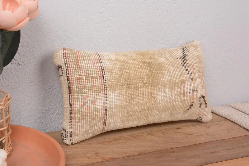 Beige Southwestern Throw Pillow, 8x16 Embroidered Linen Cushion