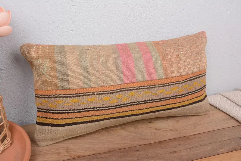 Beige & Pink Striped Throw Pillow, Versatile 10x20 Inch Pillow