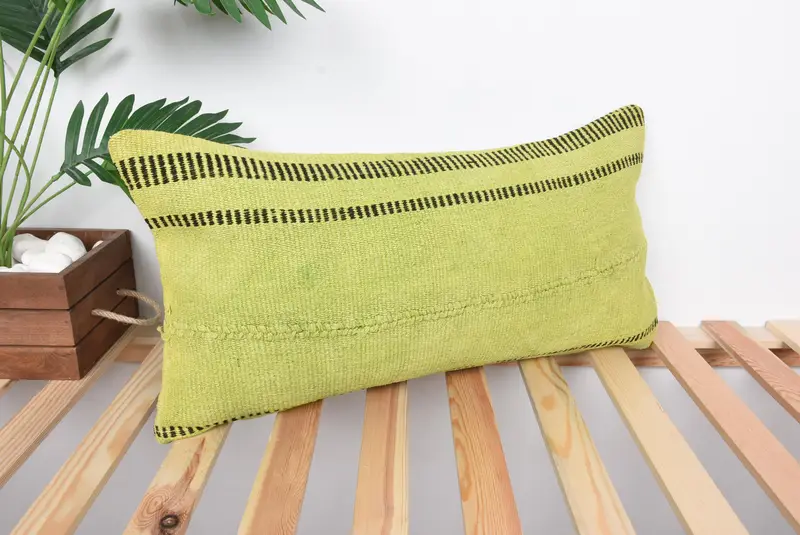 Handmade Southwestern Green Pillow, 12x24 Embroidered Vintage Throw Pillow