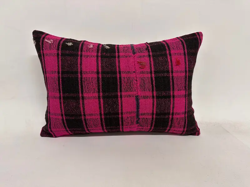 Embroidered Pink & Brown Striped Pillow, Handmade 16x24 Throw Pillow