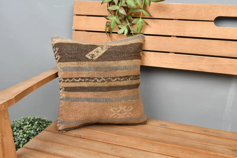 Brown & Beige Southwestern Throw Pillow, Handmade Embroidered Linen Pillow