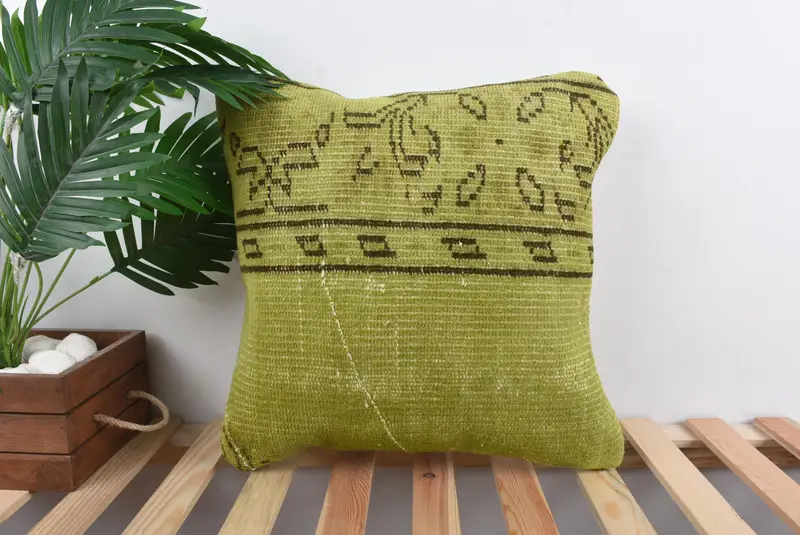 Green Southwestern Throw Pillow, Vintage Embroidered Cushion, 18x18