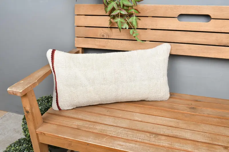 Embroidered Rectangle Throw Pillow, Striped Linen Pillow Cover