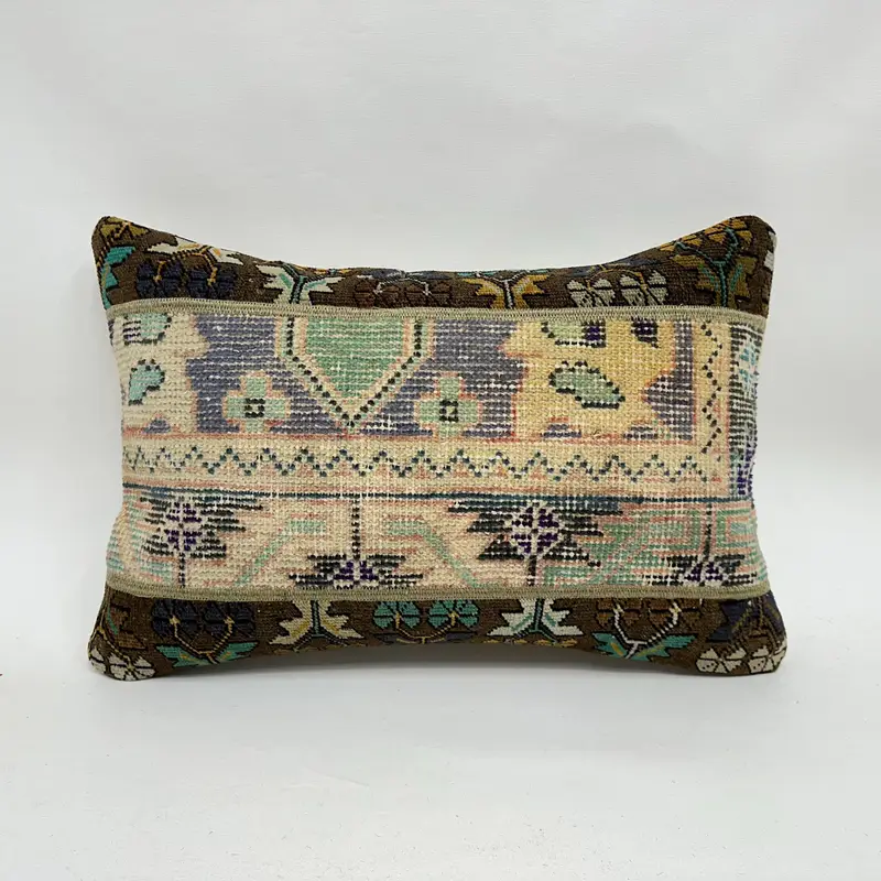 Embroidered Beige & Brown Patchwork Pillow, Versatile 16x24 Throw Pillow