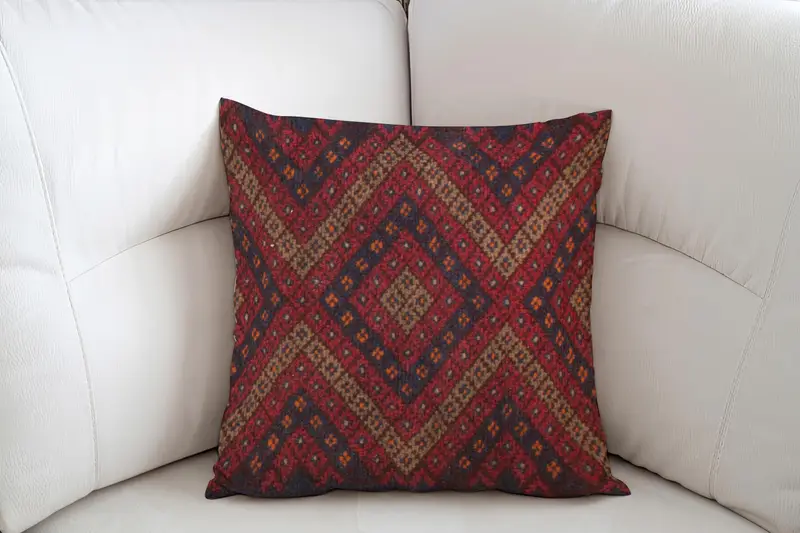 Embroidered Southwestern Throw Pillow, Vintage Red & Purple Accent