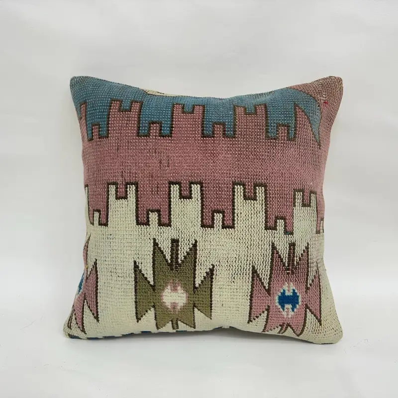 Pink Southwestern Embroidered Throw Pillow, Vintage Zippered Cushion
