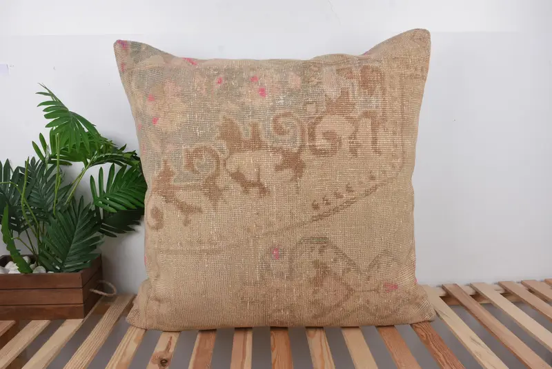 Handmade Southwestern Throw Pillow, Vintage Beige & Brown Linen Cushion