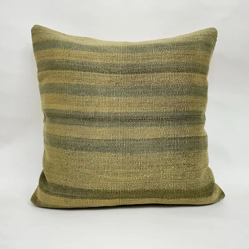 Brown Striped Linen Throw Pillow, Vintage Embroidered Cushion