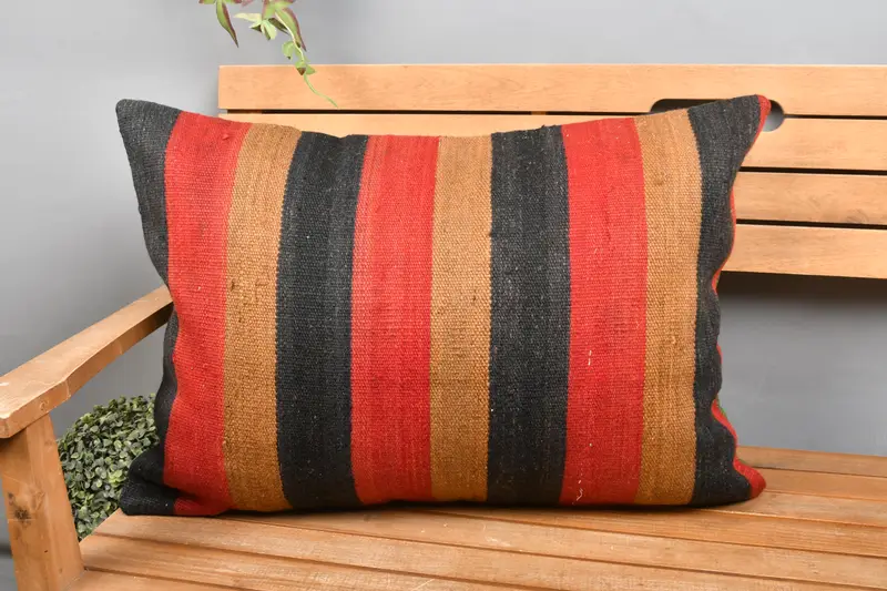 Rustic Striped Throw Pillow, Red & Brown Vintage Cushion