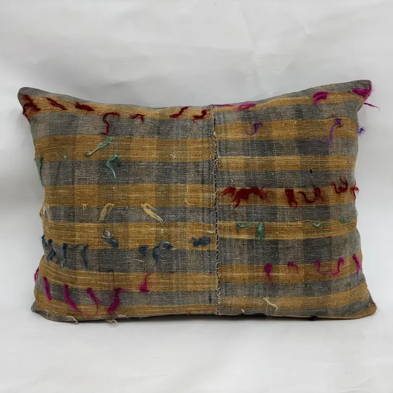 Handmade Brown & Gray Patchwork Throw Pillow, Vintage Embroidered Pillow