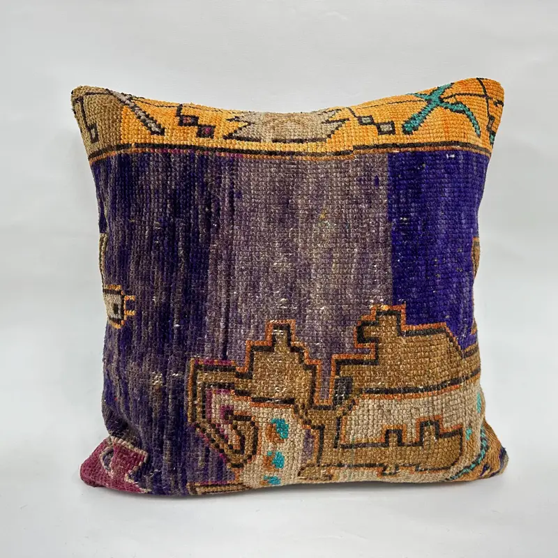 Purple & Beige Embroidered Throw Pillow, 24x24 Vintage Cushion