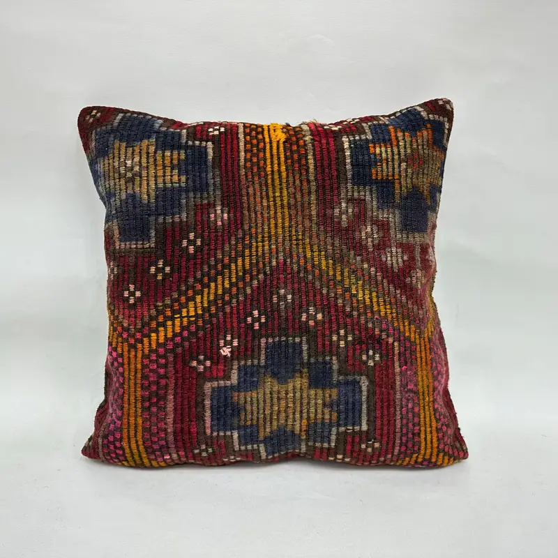 Red & Purple Southwestern Embroidered Pillow, Vintage Throw Pillow