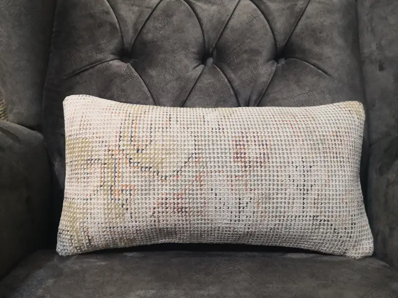 Handmade Embroidered Wool Throw Pillow, 16x8 Inch Geometric Vintage Pillow