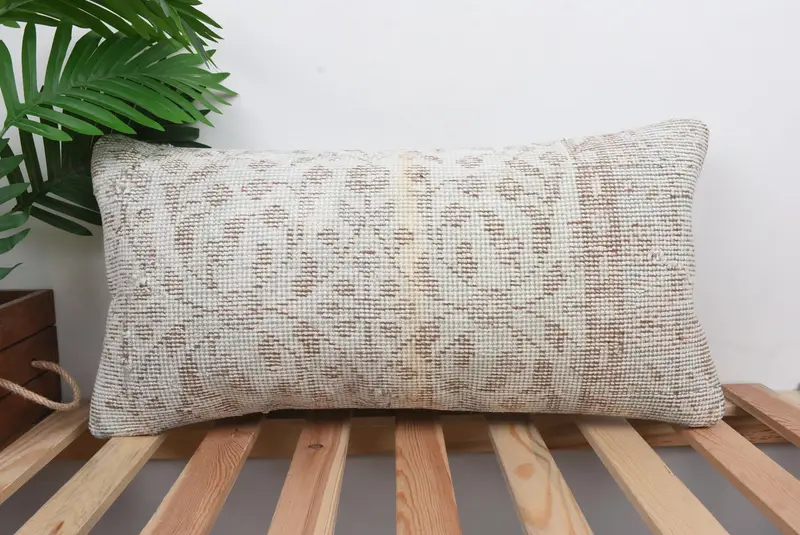Gray & Brown Southwestern Embroidered Throw Pillow, Handmade Linen Pillow