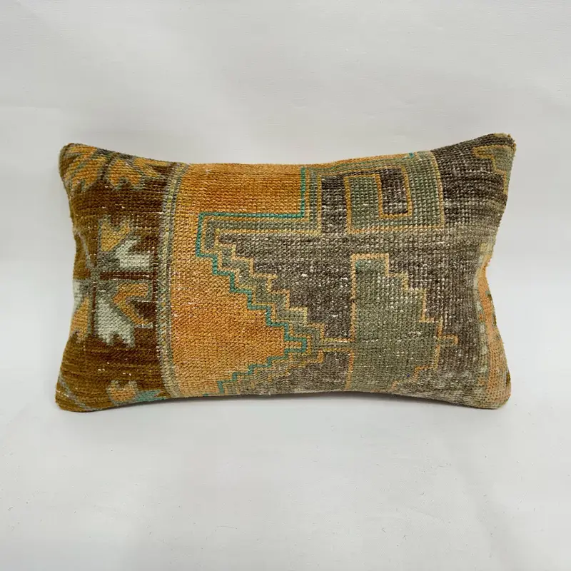 Handmade Brown Linen Throw Pillow, 12x20 Embroidered Floral Cushion
