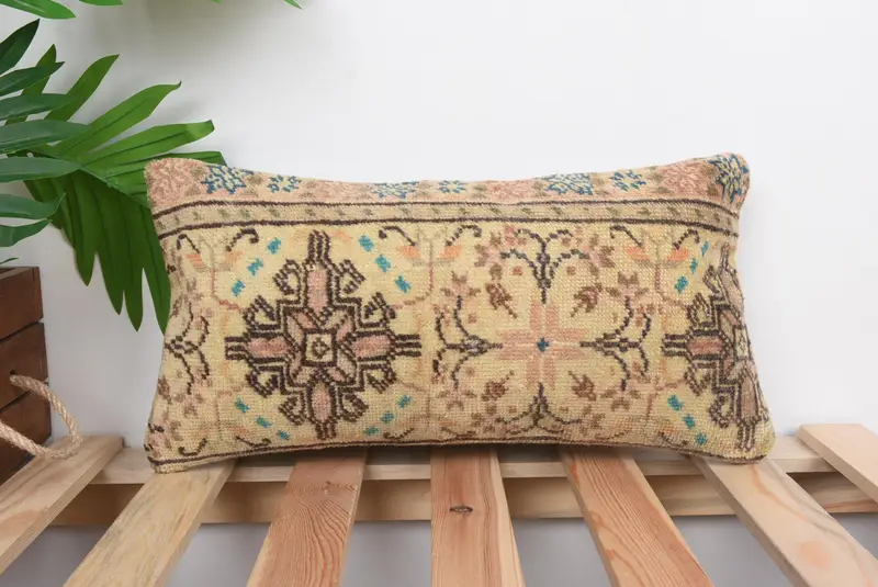 Handwoven Southwestern Kilim, 8x16 Beige & Brown Throw Pillow