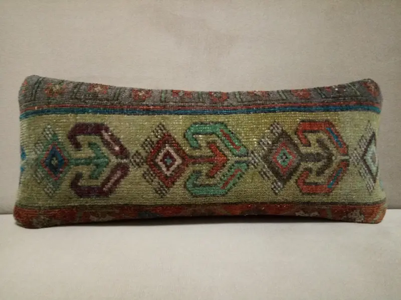 Handmade Embroidered Wool Throw Pillow, Geometric Green & Gray Pillow