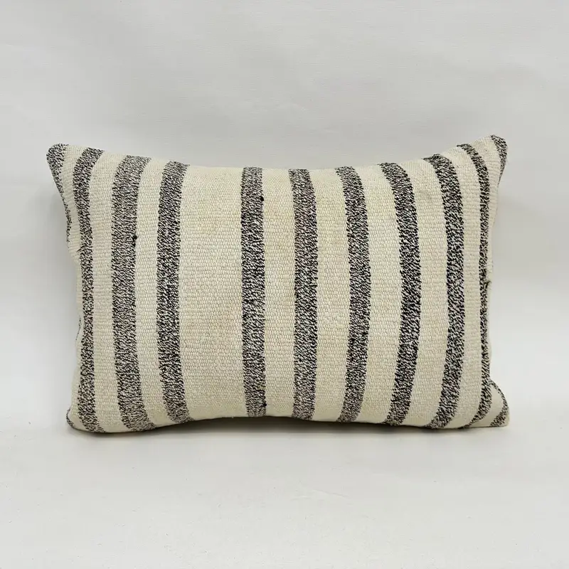Handmade Linen Pillow with Embroidered Stripes, Versatile Throw Pillow