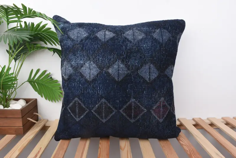 Blue Southwestern Embroidered Throw Pillow, Vintage Zippered Pillow