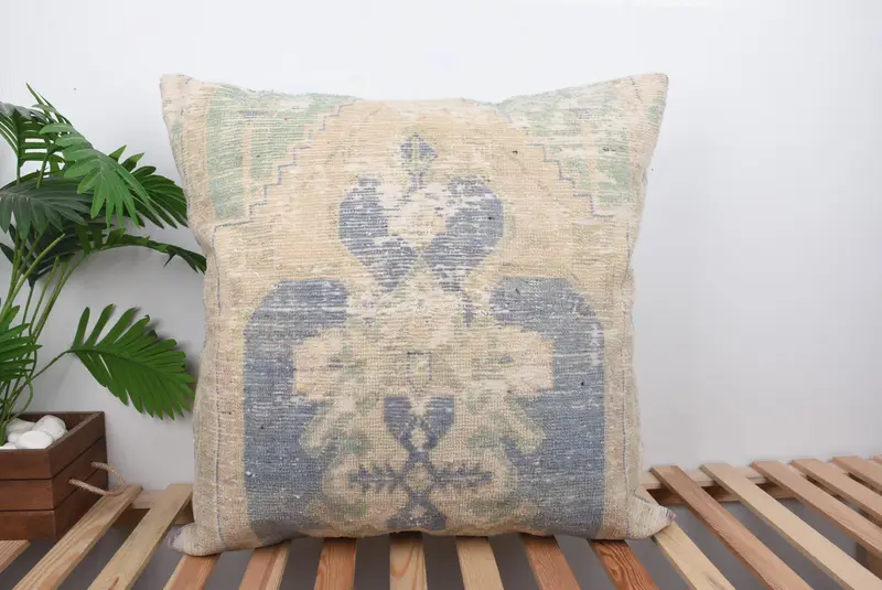 Beige Southwestern Throw Pillow, 28x28 Embroidered Vintage Cushion