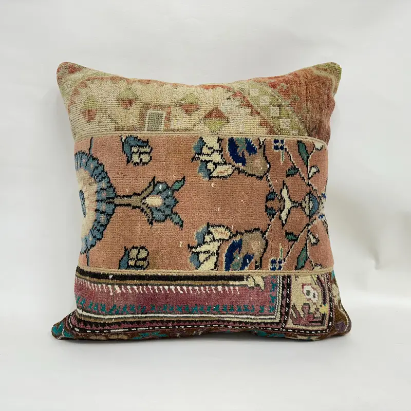 Brown Southwestern Throw Pillow, 24x24 Embroidered Vintage Pillow