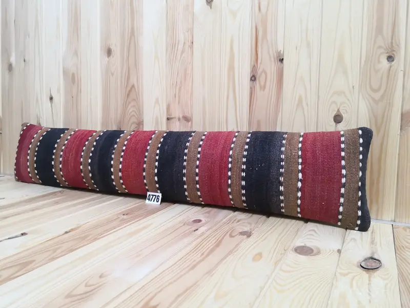 Handmade Striped Wool Throw Pillow, Vintage Red & Brown Rectangle Pillow