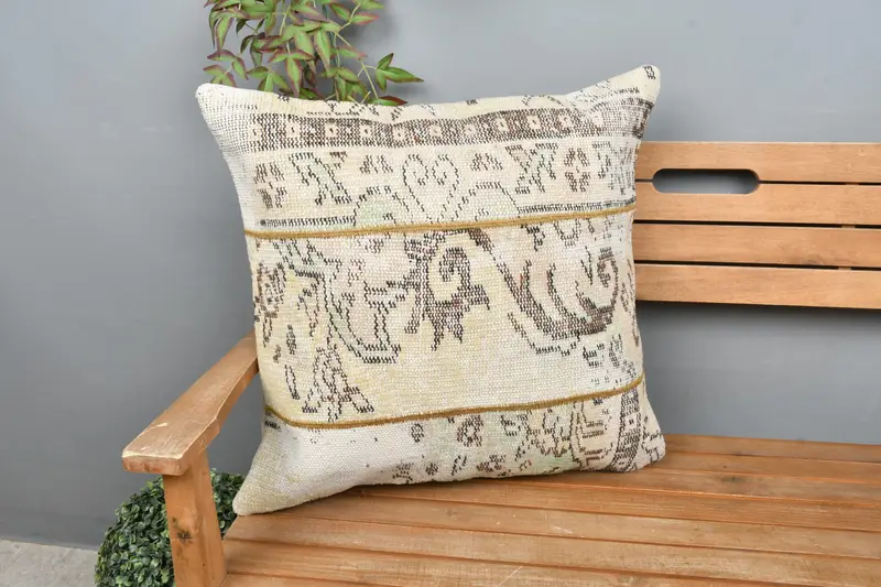 Beige Southwestern Kilim Throw Pillow, 24x24 Vintage Embroidered Cushion