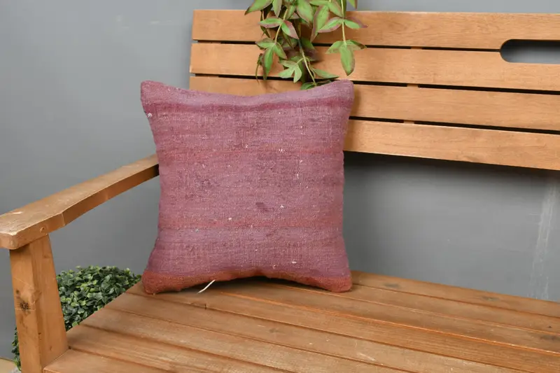 Purple & Orange Striped Throw Pillow, Vintage Embroidered Linen Pillow