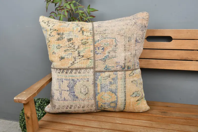 Orange & Bronze Patchwork Throw Pillow, 24x24 Embroidered Cushion