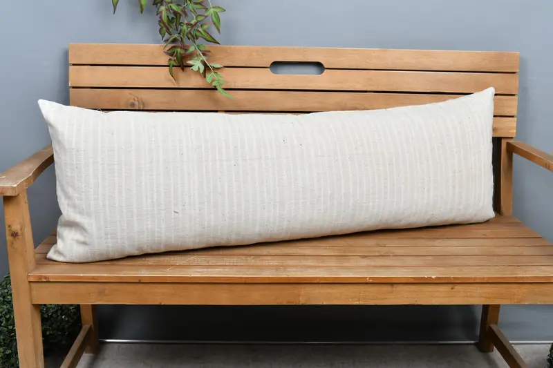 Beige Striped Kilim Pillow Cover, Embroidered Rectangle Throw Pillow