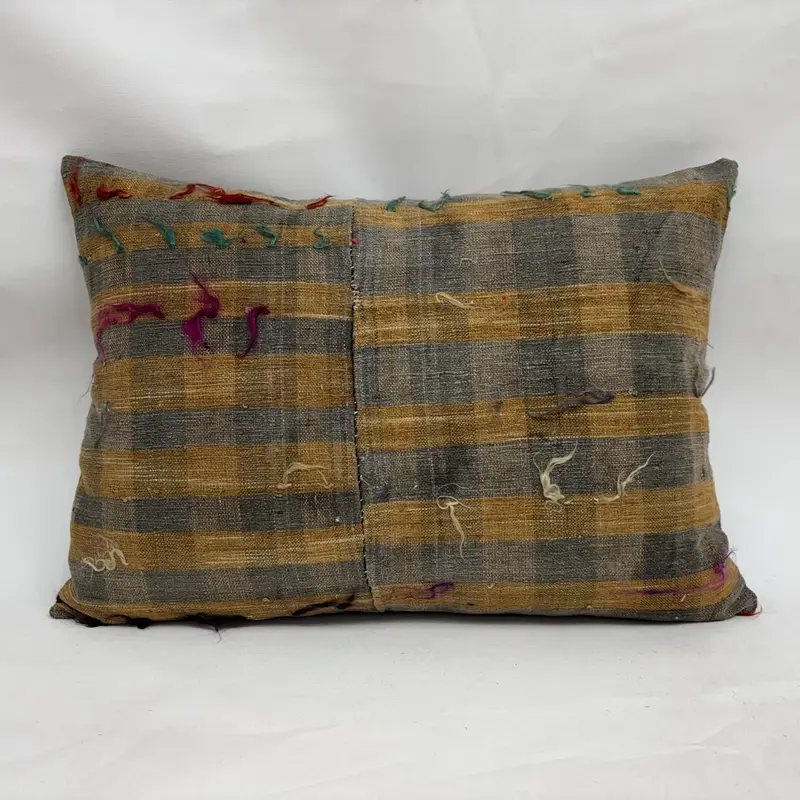 Brown & Gray Patchwork Throw Pillow, 20x28 Embroidered Cushion