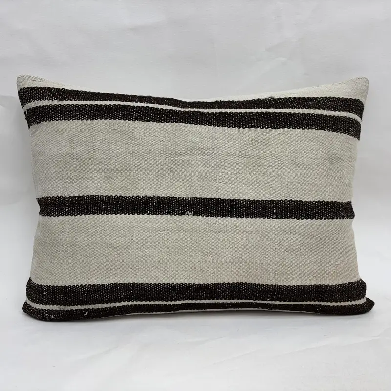 Embroidered Beige & Brown Striped Pillow, Handmade 20x28 Throw Pillow